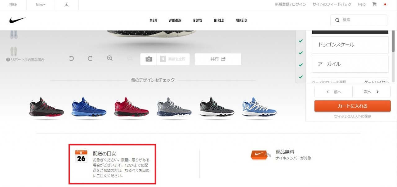 ●進入 NIKEiD 個別產品的網頁,左下角會顯示目前下訂大約需要等候的天數。