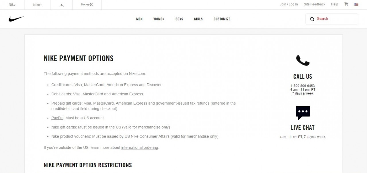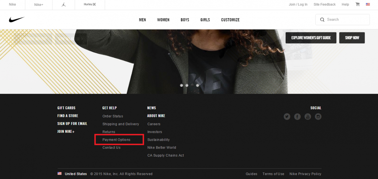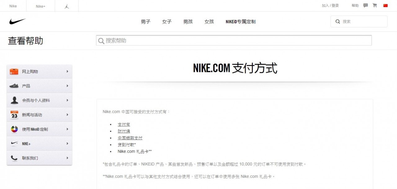 NIKEiD 付款方式包括信用卡、第三方支付平台和現金支付。圖示以美國和中國為例,這部分依國家而會有不同區別,建議可以先查詢從哪個國家訂製能對應自己所擁有的信用卡;而若是直接前往設有 NIKEiD 的實體門市進行設計,在店內下單後可選擇直接使用現金結帳。