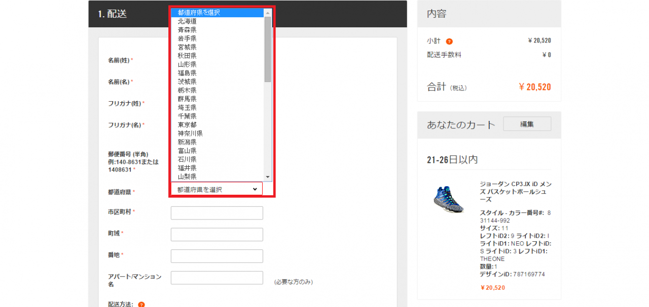 ●編輯部友人此次是從 NIKE JAPAN 訂購,因此填寫資料時就必須以日本境內作為收件地。