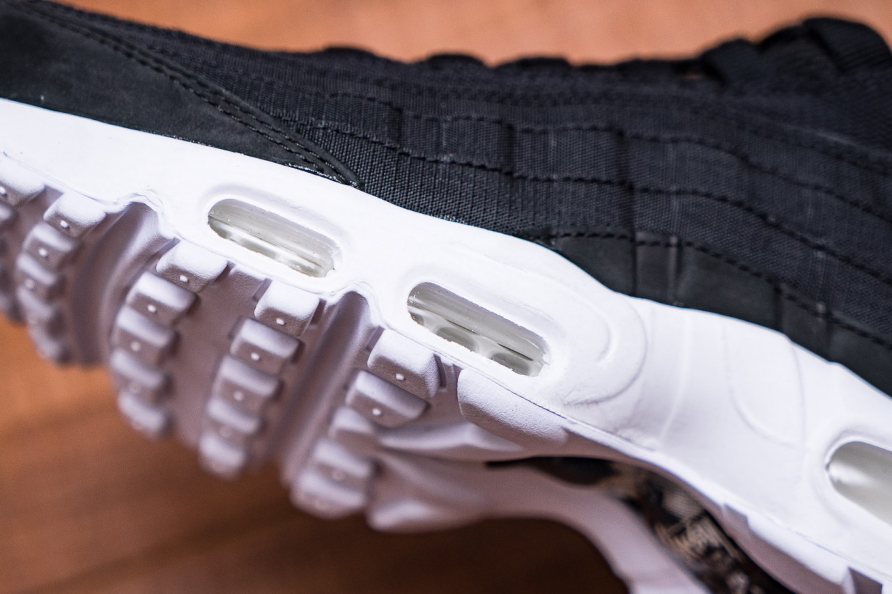 以純色構成的鞋身並不會予人單調之感,反而因為豐富的異材質拼接而富有絕佳層次感,為 Nike 於今年歡慶 20 歲的經典跑鞋 Air Max 95 勾勒出全新風貌,而將鞋舌置換為雙方首度合作時採用的 Air Huarache 形式更是令人拍案叫絕,向雙方 15 年來的長久合作致上最高敬意。