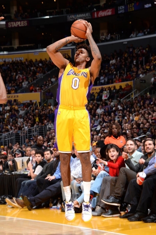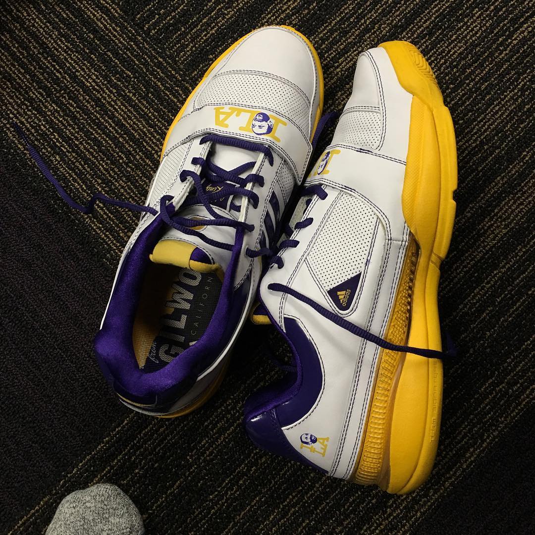 本賽季正式和 adidas 簽下代言合約的 Nick Young 繼上回著用 TS Lightswitch Gil II Zero ‘Vote for Gilbert‘ 之後,他再度換上同系列的 ‘Gilwood’ 出賽,整體色系就是象徵湖人隊的紫金搭配,此版本當初發售時同樣全球僅限量三千雙。寫到這也讓小編開始好奇,Young 他到底收集了多少雙此系列的鞋款呢?就讓我們繼續看下去吧!
