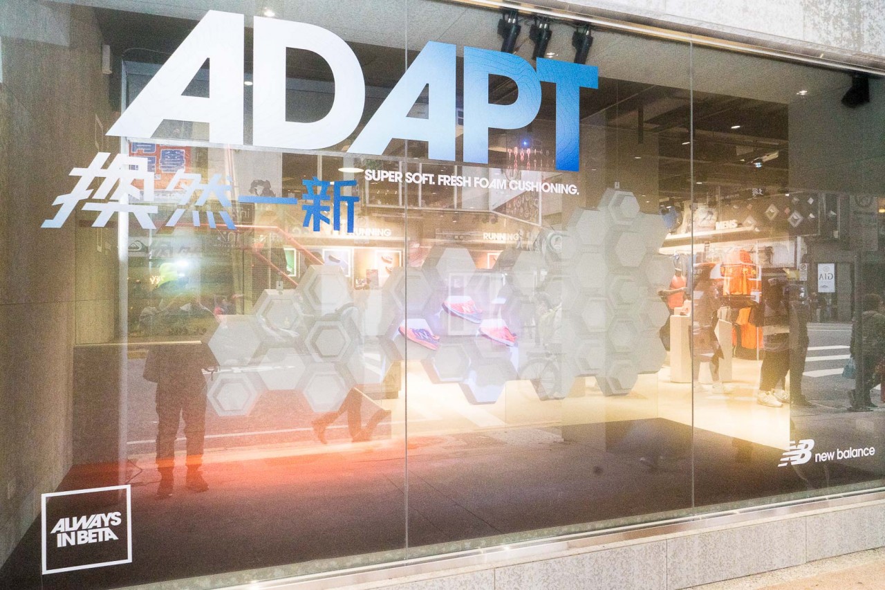 當天拍照的時候由於是白天所以光線較強,但據悉櫥窗的陳列將會有投影互動,在晚間經過的勘履者不妨留心一下一探究竟 new balance 帶給大家什麼驚喜。