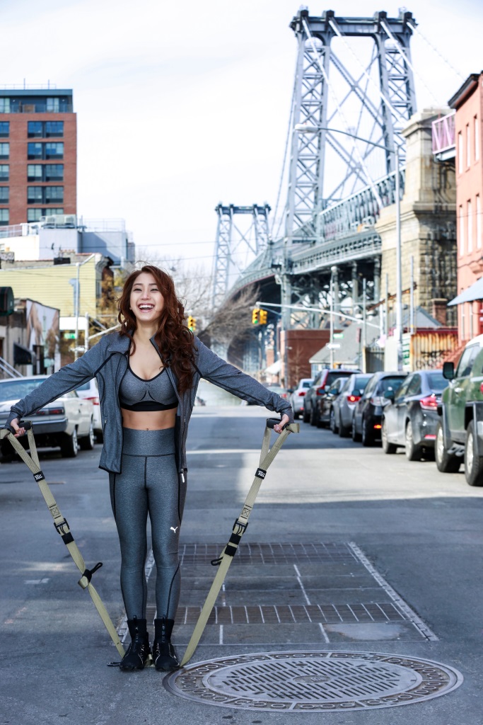 在華人市場部分,PUMA 特別邀請香港音樂創作才女姜麗文 (Lesley Chiang),以及攝影師龎超妍 (Pony Pong),前往紐約參加 Rihanna 領軍的 FENTY PUMA BY RIHANNA 時裝秀,並於紐約街頭進行一系列 PUMA 春夏女性訓練運動新品形象拍攝。喜歡 Circuits Training (循環訓練) 的姜麗文喜歡自己自信傲人的馬甲線,在拍攝時興奮地分享:「運動帶給我能量,讓我變得更堅強,也更快樂!」。穿上 PUMA PWRSHAPE 高強度女性運動系列服飾,站在 Brooklyn 橋下示範 TRX 的姜麗文,展現 PUMA 女孩們獨有的自信笑容與無所畏懼的新女性魅力。