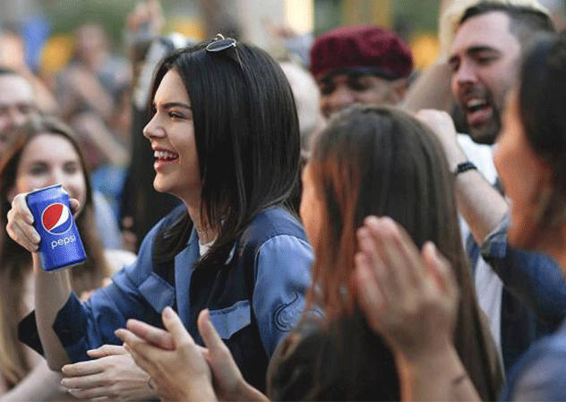 廣告的背景是一群正在遊行的人們,除了白人外也包含了多位亞洲人,就連圍著頭巾的印度婦女也參與了這場盛會。正在進行模特兒拍攝工作的Kendall Jenner被這群人吸引後,她索性卸下模特兒亮麗的妝容,換上了日常裝束,加入街頭的隊伍中。