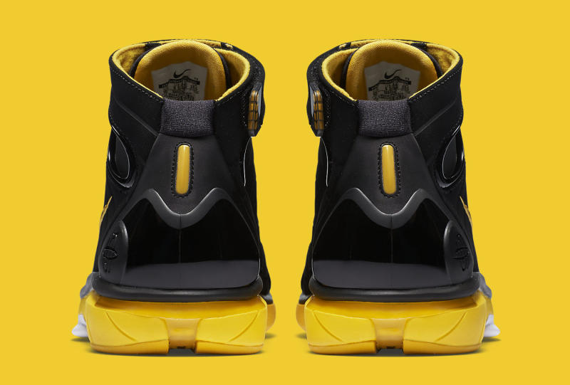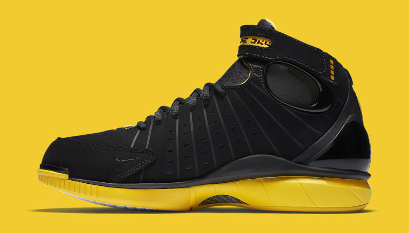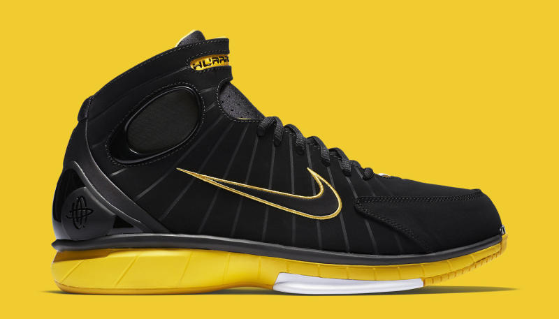 Air Zoom Huarache 2K4 導入 Huarache 設計理念,內靴設定加上兩側簍空結構在足夠保護下給予踝部靈活空間,加上中底 Zoom Air 科技,問世之時憑藉其出色的實戰性能擄獲不少球迷朋友的心,堪稱 Nike 團隊籃球鞋款中的經典模範,這也是自 2012 年後品牌再度為我們復刻這雙黑黃版本的款式。腳踝處的綁帶刻畫著鞋名是讓人印象深刻的設計,當年如 Kobe 或是 NCAA 大學的專屬球員版甚至還替換上不同名稱,而透過麂皮所構成的鞋身在現今科技林立的世代中看來更顯迷人,目前已於國外發售,訂價為 150 美元。