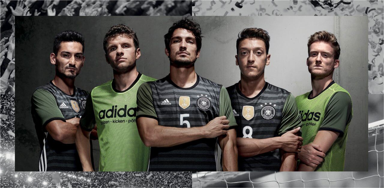 adidas 作為 2016 歐洲國家盃 (UEFA EURO 2016) 的官方合作夥伴,推出 adidas 為贊助國家隊所打造的傳奇球衣及世界盃官方授權服飾系列,協助球員發揮最佳表現。率先亮相的 adidas 全新國家隊主場球衣包括德國、西班牙、比利時與俄羅斯,即日起將於 adidas 指定門市販售,售價 NT$ 2,690 元。詳細販售店點請洽 adidas 客服專線:(02)2509-5900。