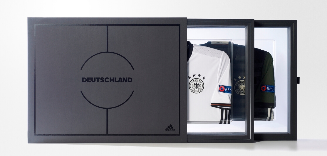 另外此次 adidas 還推出了為德國及西班牙隊主客場球衣限量套組,以玻璃盒作為包裝,非常精緻,定價 NT$ 12,000 元 / 組,於臺北忠孝旗艦店獨賣。