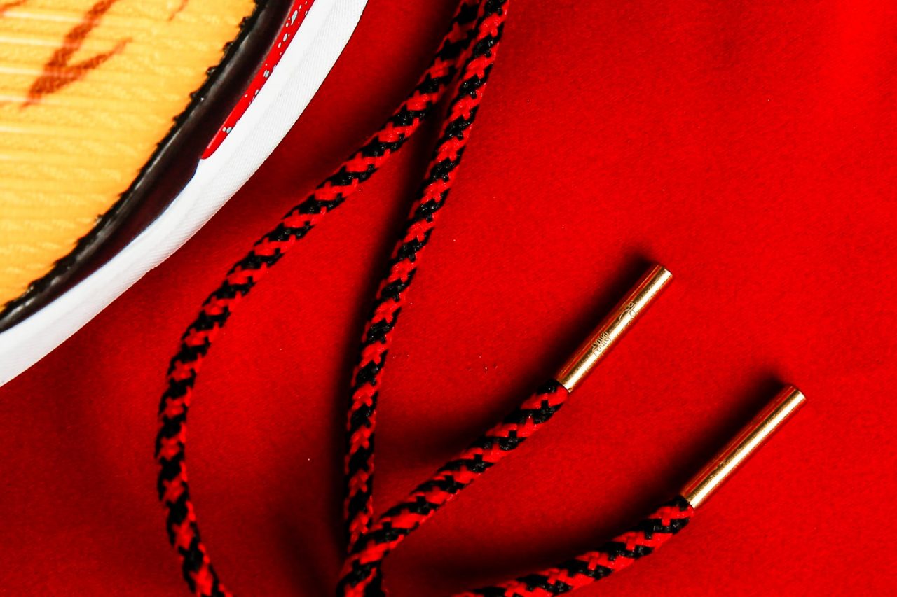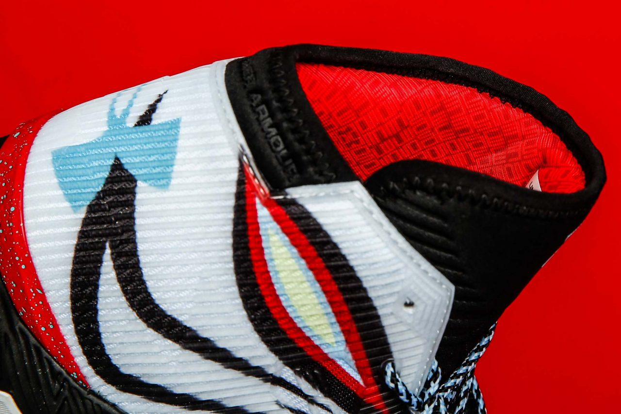 京劇的臉譜藝術運用色彩、線條及圖樣勾畫出誇張獨特的形貌輪廓,突顯角色的定位及鮮明特質,然而這次 Under Armour 打造系列商品可說傾足全力,在故事中雙方正面交鋒時各自拿出 72 變與 73 變神通,對照服飾配件的 Journey to Greatness 字樣,讓人想起了上個球季聯盟勝場紀錄重寫的里程碑。內襯由 SC30 與 Under Armour 標誌構成有如中式傳統雕花窗櫺圖案,鞋墊則是孫悟空頭上的金箍與楊戩腰際的新月彎弓,最後鞋帶頭分別可以看到「如意」與「嘯天」代表孫悟空手中的定海神針如意金箍棒與楊戩身邊的嘯天神犬,諸多細節讓兩個人物活靈活現躍然於鞋子之上,完全的展現神韻與其魅力。