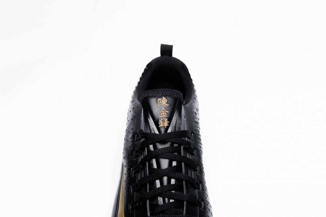 Nike Zoom Vapor Elite J Metal Shadow 為陳金鋒長期著用的實戰鞋款,配備 Nike Zoom 鞋底以及 Flywire 科技,此紀念鞋款將以黑金的獨家配色呈現陳金鋒低調卻仍鋒芒畢現的個人特質,並以許多精心打造的細節向鋒哥的職業生涯致上最高敬意,除了將在球場上穿竹的黑金版本,還另外準備了全金色的版本要給鋒哥作紀念,這兩雙特殊版本都是特別客製,並沒有販售計畫。
