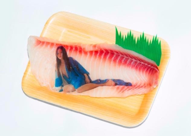 而除了人臉之外,Yuyi也將腦筋動到其他的物品上,像是生魚片(笑)