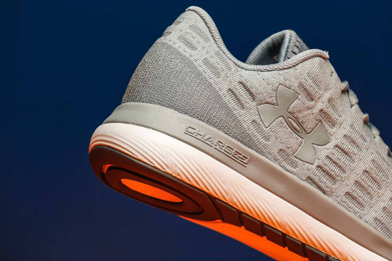 每一次的跑步都是上千、乃至上萬次反覆不斷跨步的運動,在強化體魄的訓練過程中更是得不斷向力量極限挑戰,這時候便需要足夠的支援來保護雙腳肌肉,因此中底的性能表現甚為關鍵,可說是整雙鞋的靈魂也不為過。這次的 Threadborne Slingflex 其中底色彩層次分明的模樣已經透露出訊息,混合了兩種不同密度的 Charged Cushioning 材質,將軟彈的一層放置在上方與腳掌接觸提供回饋感,搭配鞋內的 Micro G 鞋墊讓穿著腳感更提升,而底層則是偏硬的質料,肩負起對付地面的任務,作為吸收衝擊力道與穩定之用。其前、後 10 mm 高低差則能有效減緩衝擊並幫助推進。