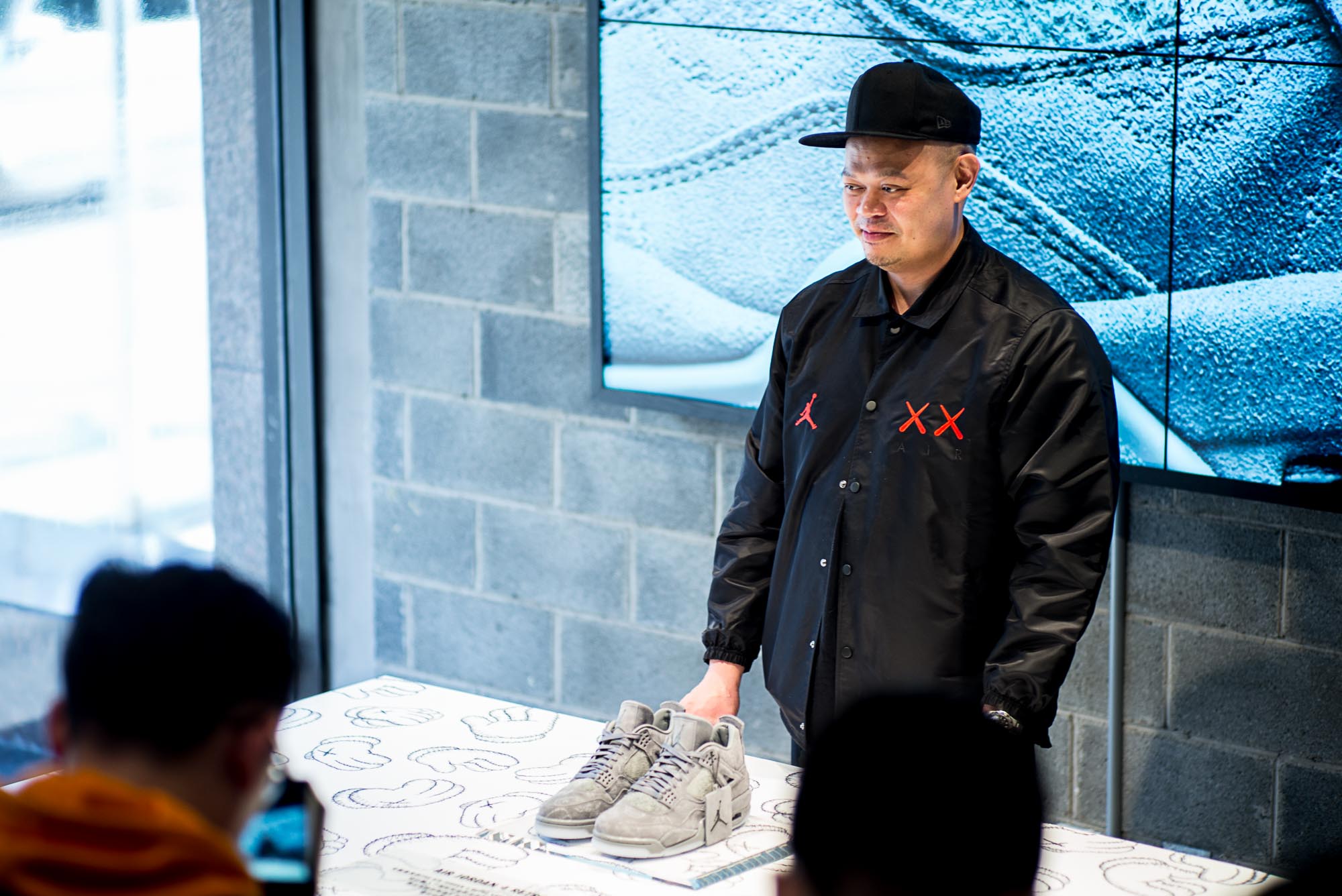 「對於顏色、對於圖樣的講究是這次與 KAWS 合作中所體驗到的一個過程,Jordan Brand 持續的目標就是用各種方式讓大家感受到『偉大』的展現,而這個目標是建立在我那其實不慎起眼的生活中,跟各方的關鍵人物傳簡訊(MJ、Westbrooks、KAWS…)、幫大家拿到鞋子還有在各種會議裡頭推動所有的專案向前。我總是緊張 MJ 會不會批准我的專案,他有時候喜歡有時候不喜歡,有時候會穿有時候不會。而這不會隨著我下班而停止,這已經是我的生活。」Gemo 推了推他的棒球帽,拿著 KAWS X Air Jordan 4 提到「對我來說,Sneakerhead 就是那些比一般人更在意鞋子的人們。」