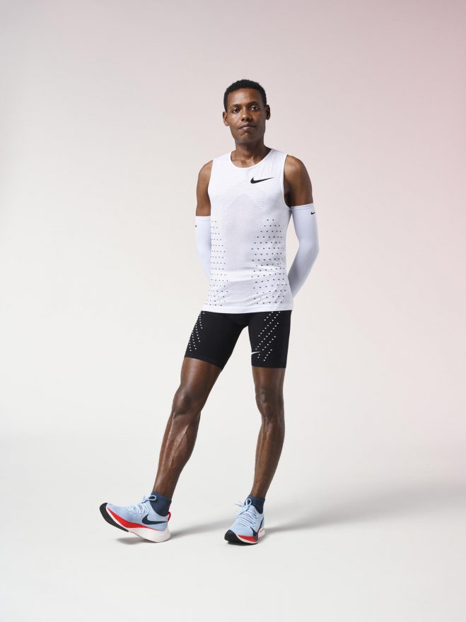為了進一步提升他們的跑步速度,Nike 決定對科技進行重新的整合,並重新考慮傳統馬拉松裝備的設計。設計師聽取了 Lelisa Desisa、Zersenay Tadese 與 Eliud Kipchoge 對於裝備改善的意見,主要針對五大關鍵領域:重量、合身度、舒適度、疲勞強度以及緊束程度。設計師依據運動員的身體掃描資料和個人偏好,為每位運動員研發出了一套完美的個人化裝備。以下是三名挑戰者於 Monza 比賽時所穿戴的裝備。
