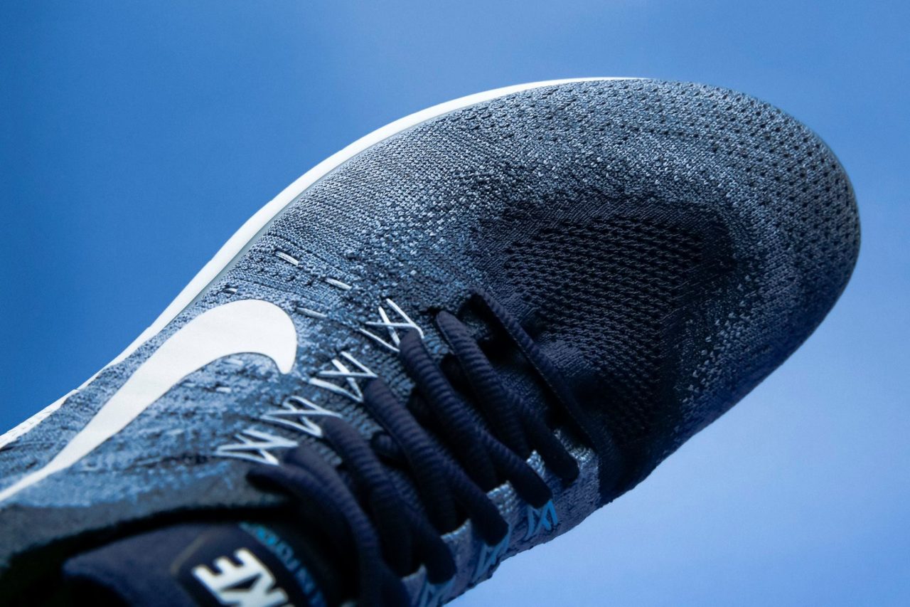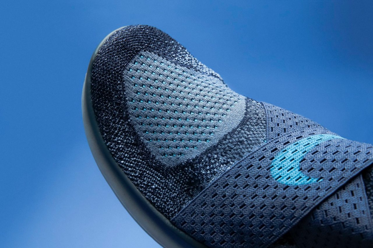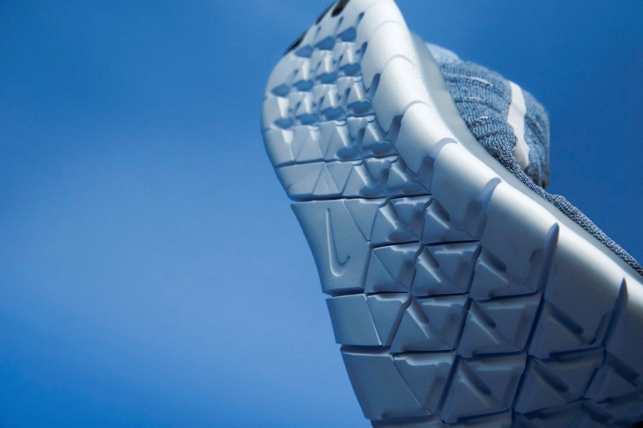 Nike Free 跑鞋在 2013 年迎來 Flyknit 技術的加持,一體成形如襪子般的特性正與 Free 的精神不謀而合,兩項科技的交匯更加貫徹所謂「自然律動」的理念。可以注意到 Free RN Flyknit 2017 鞋領後方有微微拉高、而兩側則有 V 型下切,是兼具足跟貼合度與靈活的考量;外底呈現三角狀切割紋理,設計團隊在觀察足部在著地、抬起過程中的型態變化而得到啟發,讓 Free 外底擁有可以伸展、收縮的特性,塑造出靈敏的腳感,同時使腳掌壓力能均勻分散。