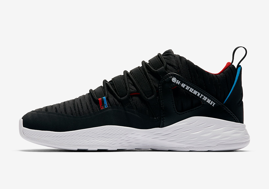由 Jordan Brand 長年贊助的法國 Quai 54 街頭籃球賽,這項從 2003 年開始的民間比賽藉由 Nike 與 Jordan Brand 的推廣下已邁向國際化,每年都會有來自世界各地的籃球好手參加,而 Quai 54 在法國當地更是受到愛戴,就像一場集結籃球、街頭時尚文化的盛會,自然球鞋文化也不會缺席這場盛會,Jordan Brand 近幾年都會推出結合 Quai 54 的鞋款,今年度率先登場的即為以 Air Jordan 10 為設計靈感的 Jordan Formula 23 休閒鞋系列,本回 ‘Ouai 54’ 配色採用低筒版型,在鞋身及鞋墊上加入象徵 Quai 54 街頭籃球賽的比賽地點 GPS 地標及 Logo,除此之外在色彩運用上也加入藍與紅色做修飾,讓人聯想到法國國旗的色彩,表現出賽事地點的關聯性。