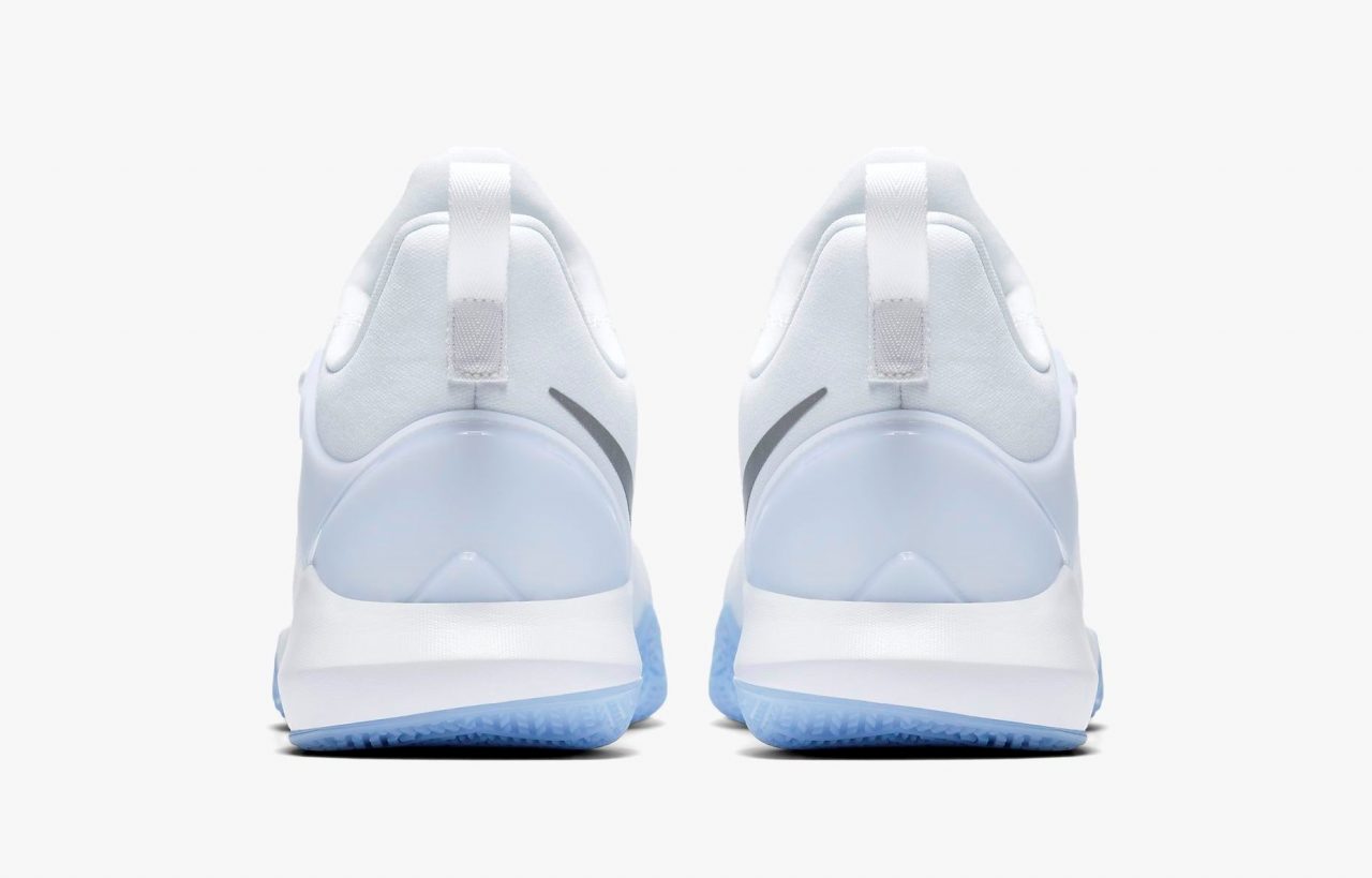 過去 Nike HyperShift 在實戰上的表現有著不錯評價,而今年此系列與 Nike 其他實戰鞋款同樣拿掉了 Hyper 之名,更名為 Nike Zoom Shift,設計上承襲過往的低筒一體式內靴風格追求靈敏度,採用網布材質鞋面並在需要加強支撐部位以 TPU 薄膜增加穩定性,與前代較為不同的是在足跟處增加強化支撐性的穩定片設計,並且在鞋領處的海綿填充也較厚實,提供足踝較好的包覆感,氣墊配置上則延續前腳掌 Zoom Air 的設定達到緩震效果,外底紋路 Nike Zoom Shift 以密集箭形顆粒為主加上幾何線條劃分,打造多向性的抓地穩定。