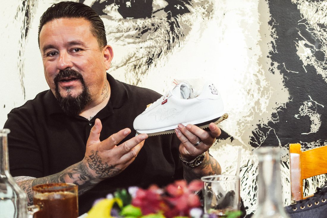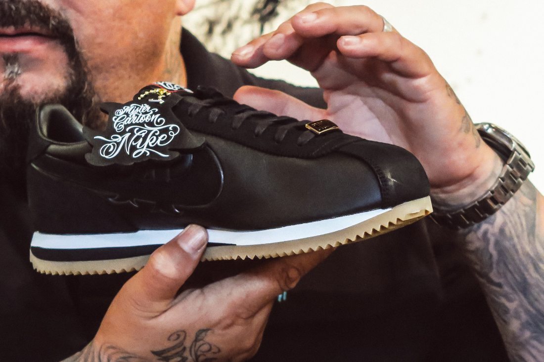 對於 Mister Cartoon 這號人物,不論是在球鞋、刺青或是嘻哈領域,都有他留下的足跡,身為刺青藝術家的他,擅長西岸最有名的 Chino 風格,也是台灣俗稱的老墨,因緣際會下幫許多饒舌歌手刺青, 進而跨入饒舌圈,也曾幫 Eminem 設計專輯封面,至於鞋履設計方面,各位最有印象的可能是 2009 年 LIVESTRONG 基金會共同推出三方聯名的 Nike Air Force 1,而其實在更早的 2005 年,Mister Cartoon 就已和 Nike 合作發表 Cortez Basic ‘Mr Cartoon’ 系列,這回再次的攜手更別具歷史意義。