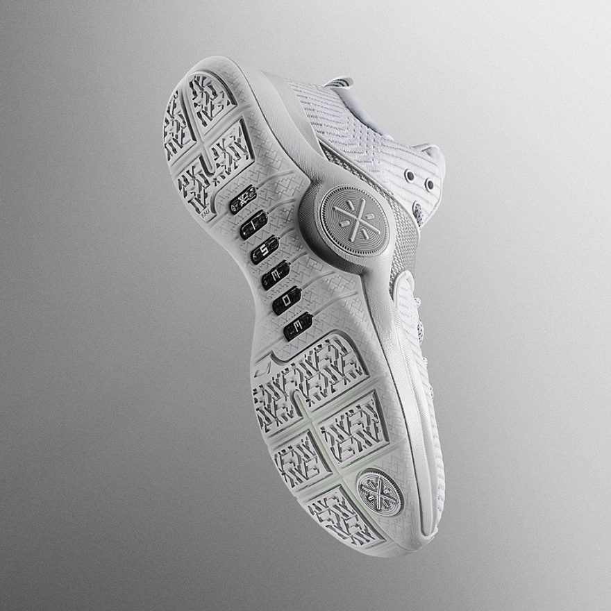 可以看到 Way of Wade 6 在設計中加入了綁帶的配置,鞋面使用了追求輕量化的針織材質,此次的中底 Cloud X DriveFoam 避震科技據悉是與德國化工大廠 BASF 合作開發,相信腳感值得期待,而外底除了嵌入大面積固定片外,後腳掌特殊的紋路和切割,可以想見鞋款能提供上乘的抓地力和靈活性。