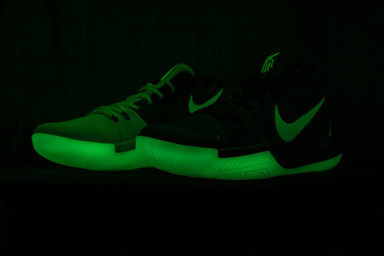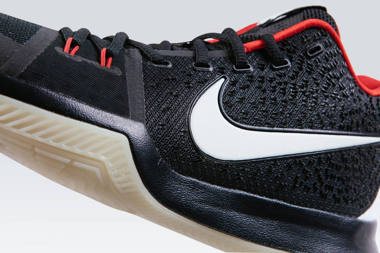 這雙 Nike Kyrie 3 在上周由 Kyrie Irving 在日本東京首度用曝光時 (站內報導) 便引起不小注意,首先內、外側顏色不對稱的設定相當搶眼,而色彩組合也讓有些鞋迷聯想起 Air Yeezy 系列,加上球星本人的親自著用,讓這款新樣式有著高度討論聲量,好消息是這雙新款稍早已經正式登陸臺灣 Nike 官網,據官方表示此雙配色是以 Kyrie Irving 座右銘 “Hungry and Humble” 為靈感來源,黑白鞋面搭配夜光鞋底呈現,夜光元素代表著 Kyrie Irving 球場上萬花筒般詭變的進攻手段;而此次整雙配色是無法變更設計的,僅鞋舌有開放繡上文字或號碼,如同今年明星賽期間無預警登場的 Kobe A.D. BHM 是採同樣模式。