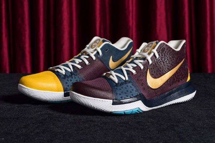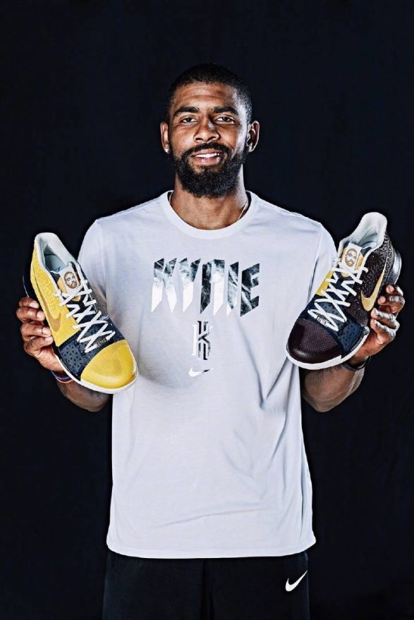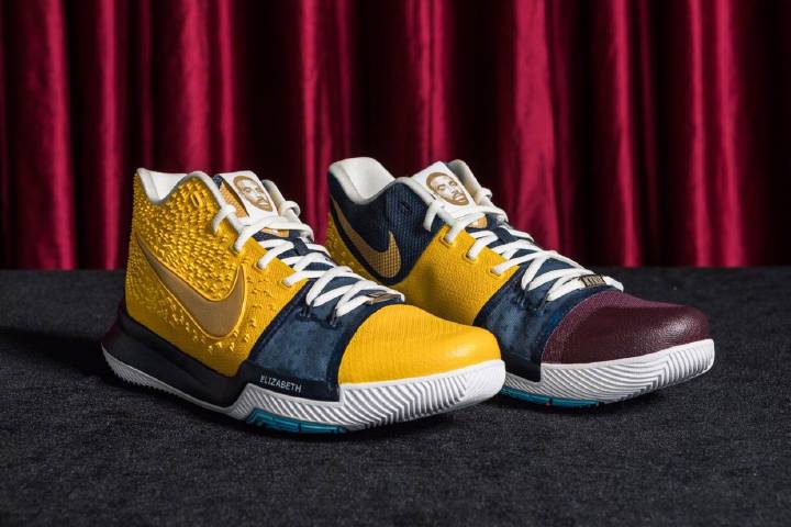 此行在臺灣 Kyrie Irving 還收到了一份相當特別的禮物,他手上這雙是一位非常喜愛他的球迷 – 濱英格所準備的 Kyrie 3 Custom,委由客製單位 UNDER CONTROL 及 LASERiD 雷射雕刻客製工作室協力完成,僅僅極少量製作兩對,而其中一雙也順利送給了 Kyrie Irving 本人。