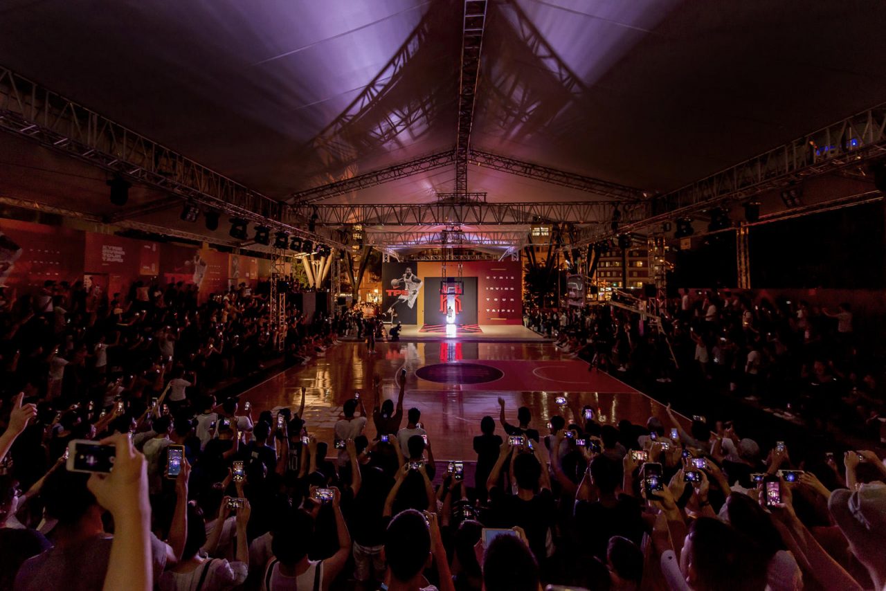 迎接 Kyrie Irving 初次造訪臺灣,Nike Taiwan 準備了相當豐富的行程與活動,首日便在西門町電影主題公園舉辦 Rise Academy 訓練營,在電影主題公園現場搭建起「KYRIE 籃球 X 音樂互動體驗球場」。