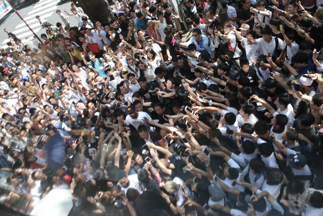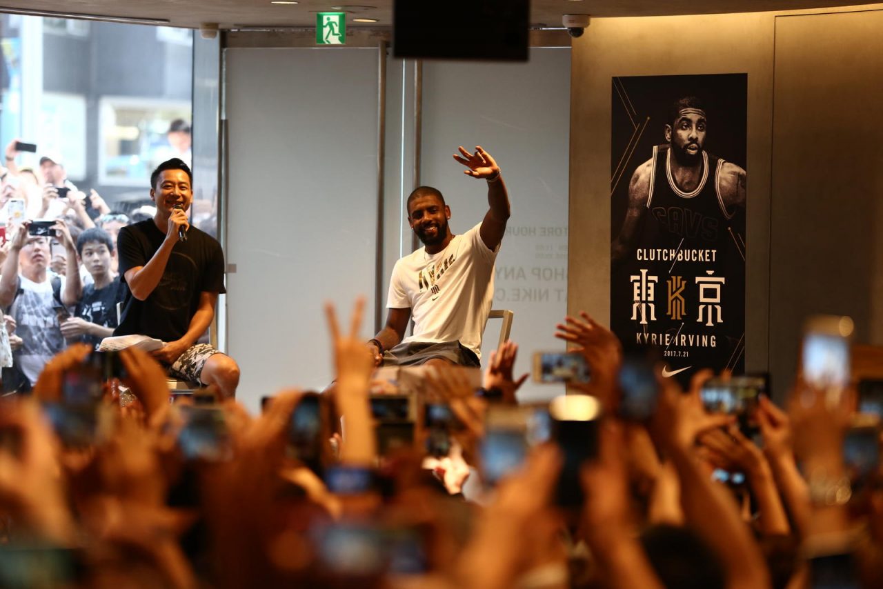 在東京的第二天他先是造訪位於原宿的 Nike Harajuku 旗艦店,看看照片中守候在店門外的大批球迷就可以知道 Kyrie Irving 在日本的高人氣,隨後他去到了大田区総合体育館 (Ota-City General Gymnasium) 在訓練營活動中親自指導年輕球員,場邊超過 3,000 名球迷的熱情讓他的首次日本行留下了深刻印象。