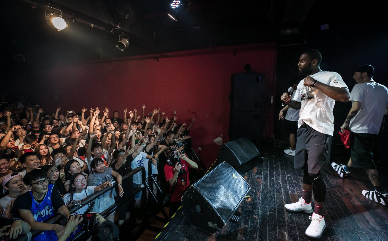 告別臺灣後,Kyrie Irving 抵達北京當晚先是去了愚公移山 LiveHouse 欣賞音樂表演,感受北京在地文化的魅力,而滿場球迷們的熱情也讓 Kyrie Irving 來到台上與大家致意並合照留念,甚至還親自送出 T-Shirt 送給球迷紀念,用音樂與歡笑聲開啟他的北京之旅。