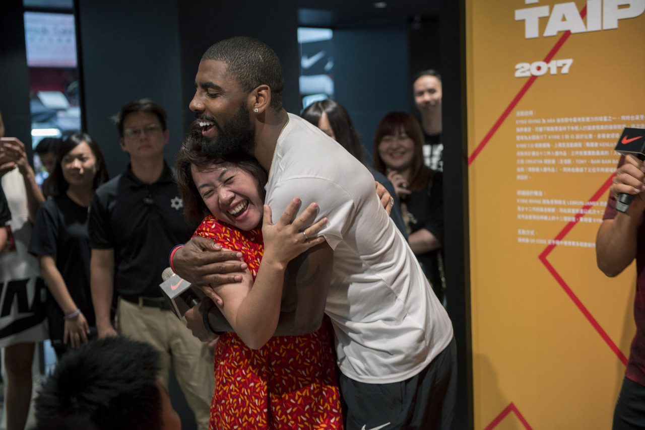 隔日 Kyrie Irving 先是出席了媒體記者會,隨後去到了西門町花花籃球體驗店,與勘履特區《籃球故事籃球鞋》活動中票選出的幸運球迷們見面,透過 Kyrie 3 iD 分享彼此的故事,當日現場內容各位可以參閱我們的完整報導。