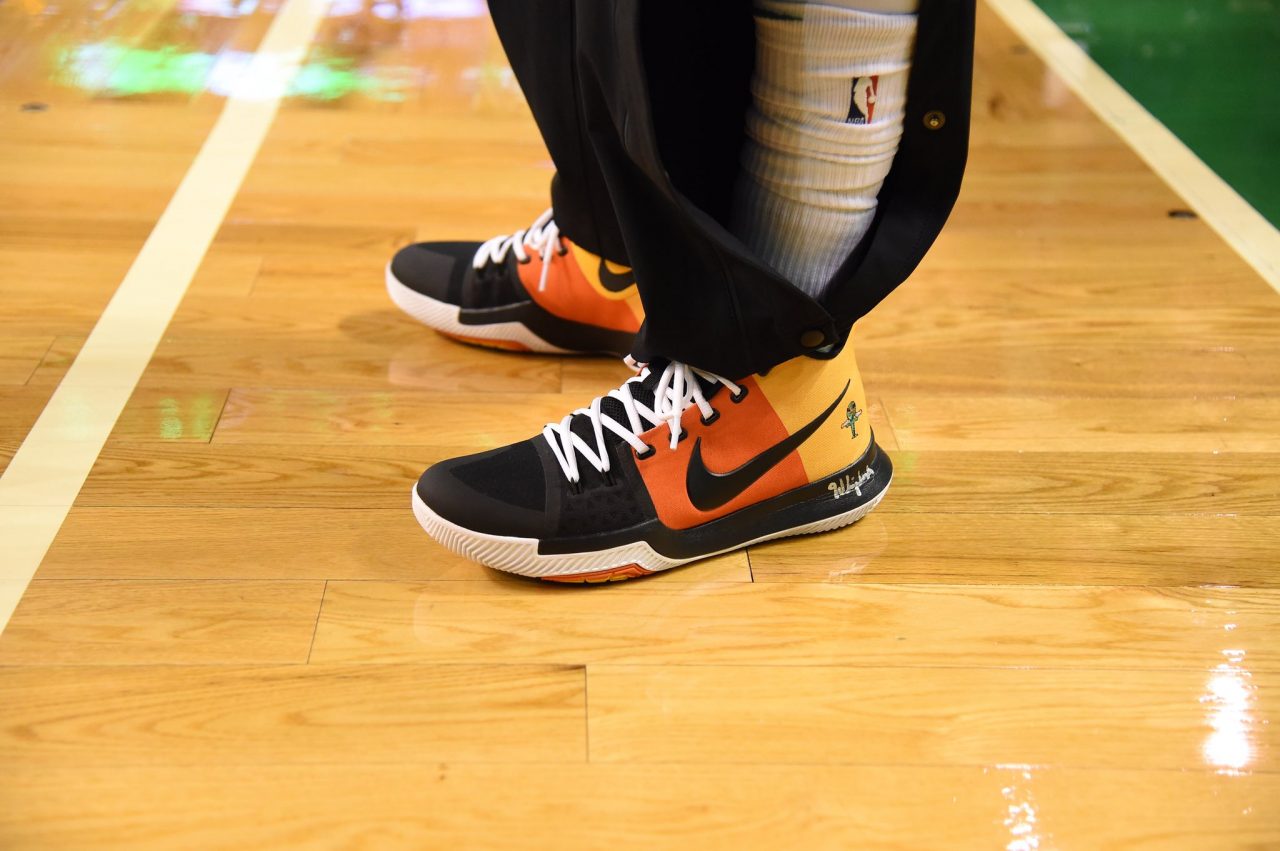簡單介紹完關於 Roswell Rayguns 的故事,讓我們再把焦點移回 Kyrie 3 身上,可以發現此次後跟的標誌是以最初設計呈現 (手持雙槍),忠實還原了 Nike Dunk Low Pro SB 的神髓,至於為何突如其來有這麼一雙特別的球員版現身呢?期待 Nike 或 Kyrie 能為我們解答了。