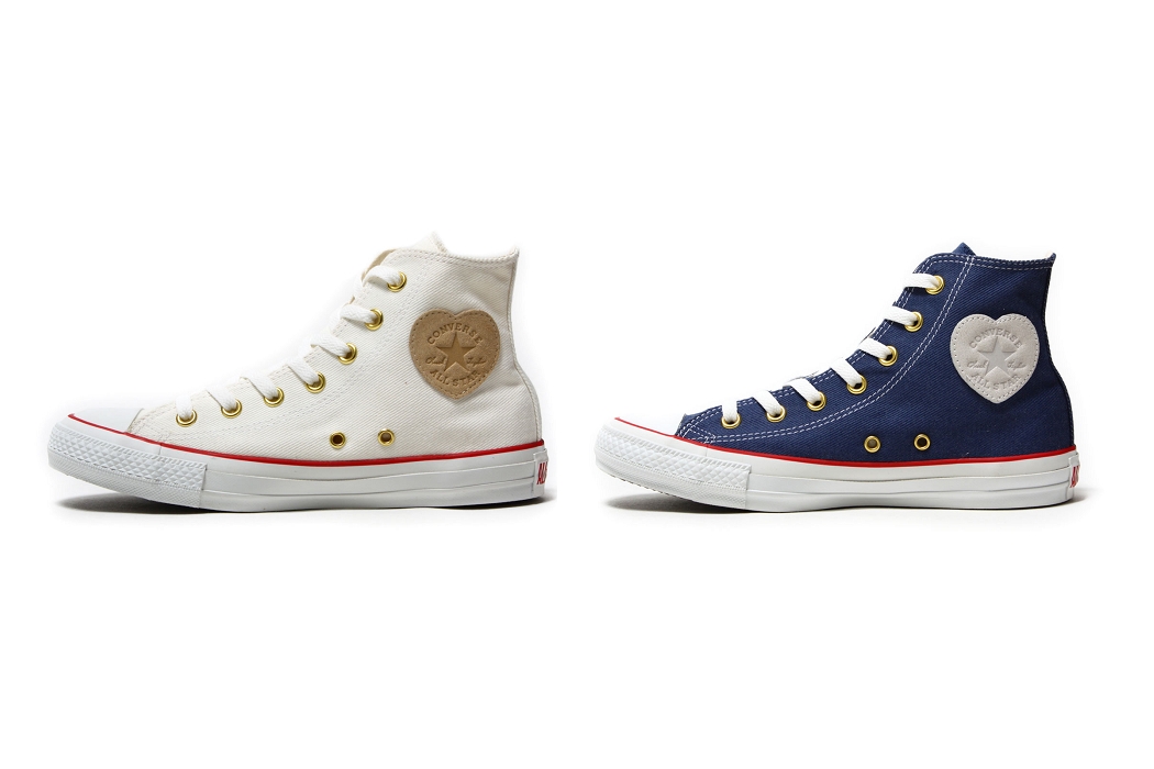 CONVERSE Chucks SISTERS 是專為女性設計的系列,以經典的 Chuck Taylor All-Star 為基底,延伸出懶人鞋、高跟鞋等不同型態,而在去年秋冬的發表中,將 All Star 內側的圓形皮革標改為愛心輪廓,內側的字樣依舊,洋溢可愛氛圍,而 2018 春夏也使用相同設計,不同的是,側標由原本的塑料改為麂皮,材質上也挑選丹寧布來詮釋,用色上共有湛藍和米白兩色,並輔以紅線和今金屬鞋帶孔妝點,目前日本的 atmos 已開放預購,預計 12 月交貨,定價 7000 日圓 (未稅),型號分別為 32991716、32991710。