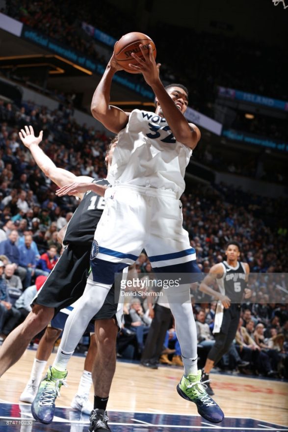 作為 Nike Hyperdunk 系列代言人之一,Karl-Anthony Towns 在本賽季著用過不少客製版本的 Hyperdunk 2016,包含先前聲援種族議題以及慶祝萬聖節的樣式在內(站內報導),都讓我們一再看到客製師的深厚功力。而美國時間今天是 Karl-Anthony Towns 的 22 歲生日,他不僅在主場以雙十數據幫助球隊取勝,同時也穿上由國外客製單位 Kickstradomis 替他繪製的這雙生日特別版,鮮豔的鞋身外衣猶如極光般的漸層色彩,相當漂亮且吸睛,踝處則有著一頭仰天長嘯的狼影,完成度可說是十分到位。