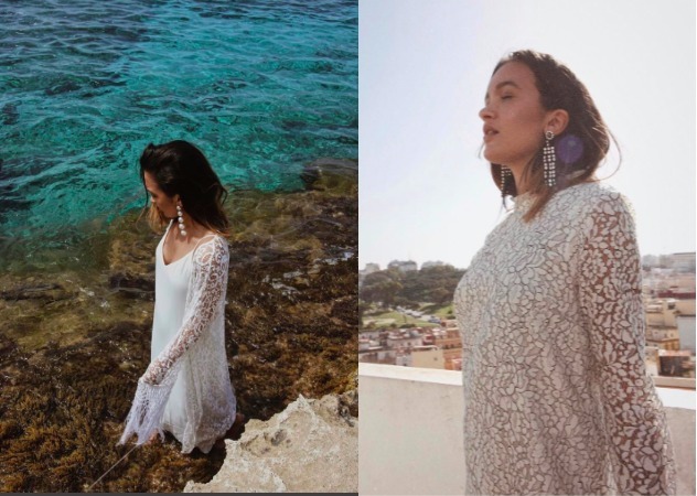 沒錯,今年的洋裝或是上衣,一定要帶有一點透膚若隱若現的感覺,選擇白色的洋裝非常浪漫,同時,極搶眼的耳環也是今年最夯的配件之一!