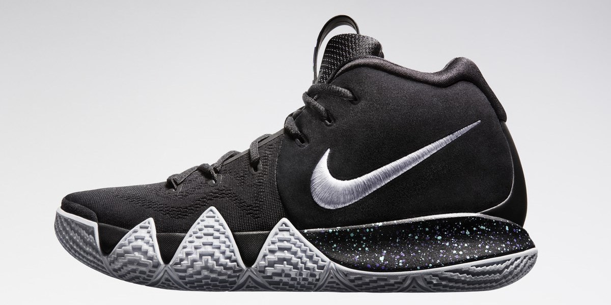 Nike KYRIE 4 中底搭載 Cushlon 發泡材質與後跟 Zoom Air 氣墊,鞋身由前段網布、兩對 Flywire 支撐線材加上後段麂皮組成,而 Nike KYRIE 系列向來很有特色的外底在這一代結合了曲狀溝槽、菱形切割處理以及向上延伸的齒狀側面結構,幫助腳步變向、啟動流暢無礙並有效防止側翻。