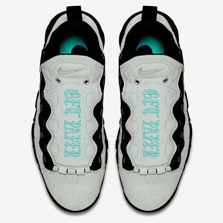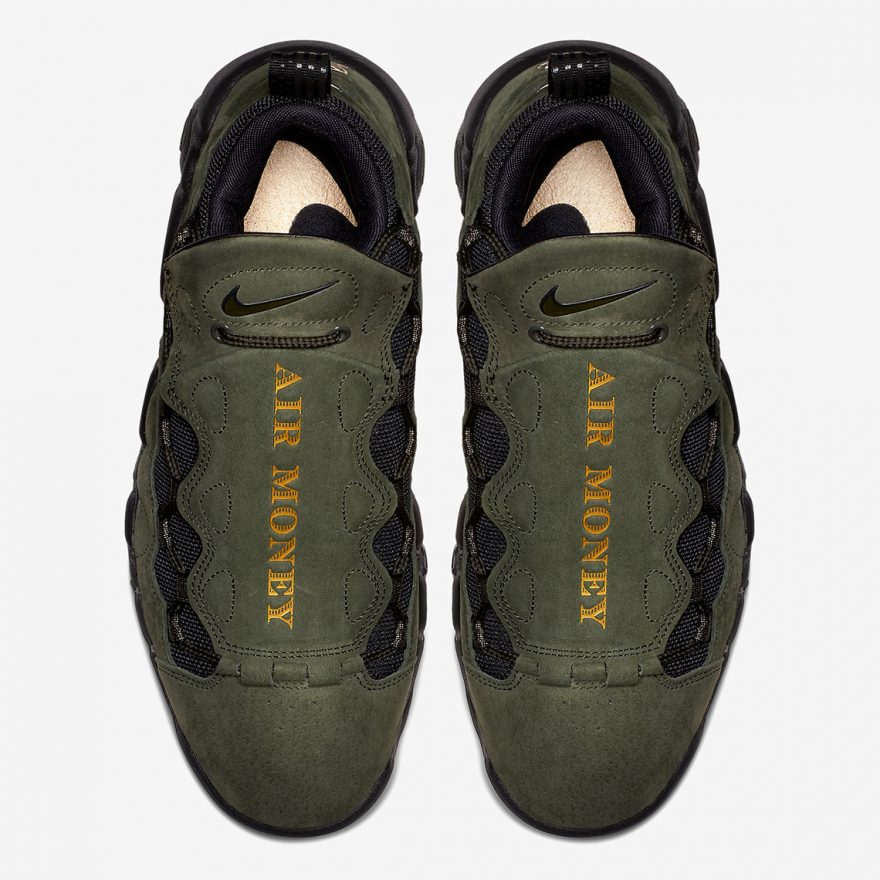 當 90 年代膾炙人口的 Nike Air More Uptempo 與 Nike Air Money 合體後,擦出的火花就是這雙 Nike Air More Money,擷取了兩雙球鞋獨有的造型,更在首次問世就以聯名款式為乳腺癌研究與治療獻上心力(站內報導)。而這回更有趣的以「錢」作為這次的主題設計。三款以麂皮鞋面呈現,分別有「美金」、「法國歐元」與「英鎊」款式,據悉此系列即將在 2018 年 1 月份登場。