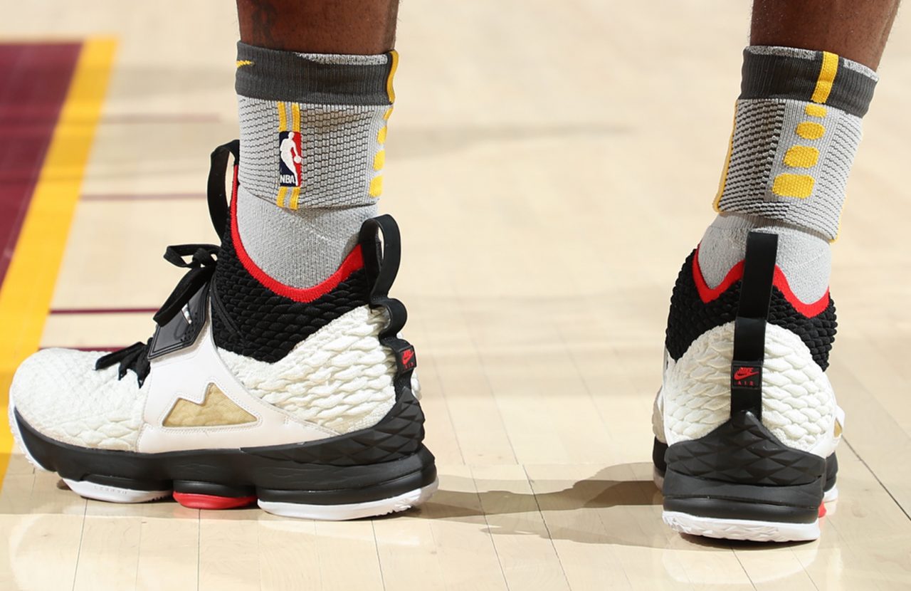 Nike 日前啟動全新 LeBron Watch 企劃,向品牌歷史上經典鞋款、運動員致敬,並將代表性元素融入 LeBron 15 之中打造 Hybrid 之作,而繼首款 ‘Waffle Trainer’ 之後今天 LeBron James 穿上了第二款 ‘Diamond Turf’ 出賽,鞋款結合了美式足球、棒球雙棲的傳奇運動員 Deion Sanders 所代言的 Air Diamond Turf,包含配色區塊分佈、綁帶結構都如實呈現。