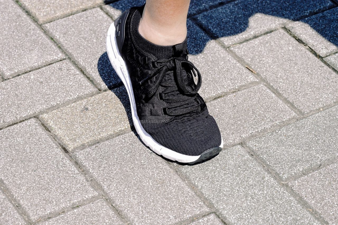 Under Armour HOVR Phantom 使用針織襪套型設計,於鞋口緊緊的包覆住腳踝提供一種可靠的舒適感,但襪套剛好包在阿基里斯腱下方,如果穿稍短的襪子也許運動時間一久會有磨腳情況,因此建議還是穿高於腳踝的運動襪會比較適合。另外,它的鞋帶孔比一般跑鞋來的少,並且是一體式鞋舌構造,加上鞋帶較粗,其材質摸起來摩擦係數較低,若只打一圈蝴蝶結,在跑步的過程中可能會鬆脫,所以我用蝴蝶結再加一圈活結讓鞋帶更穩固。
