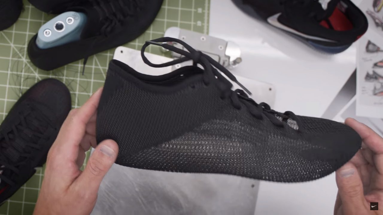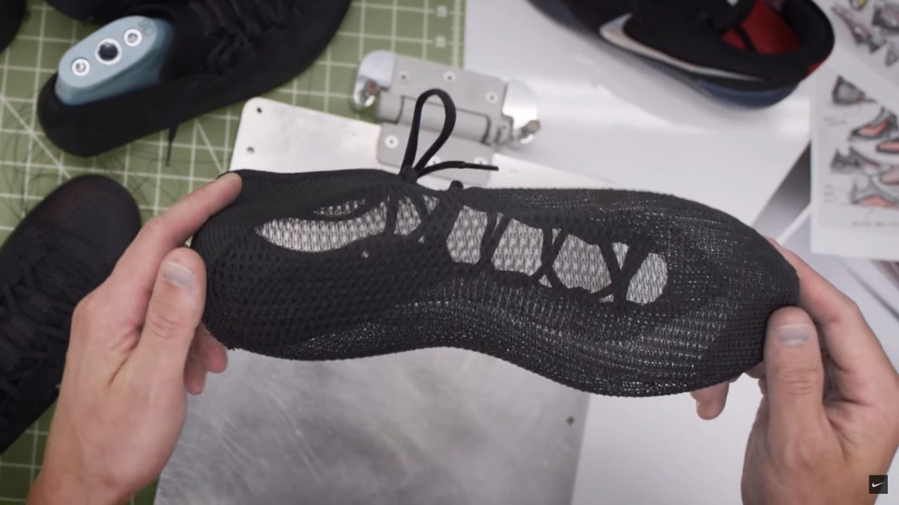 影片中可以看到運用新 Flyknit 技術的鞋面不同於以往所見,完整織出了一雙鞋子的雛型,讓雙腳能夠被完整包覆在內,像是襪子一般,更接近所謂第二層皮膚般的緊密觸感。