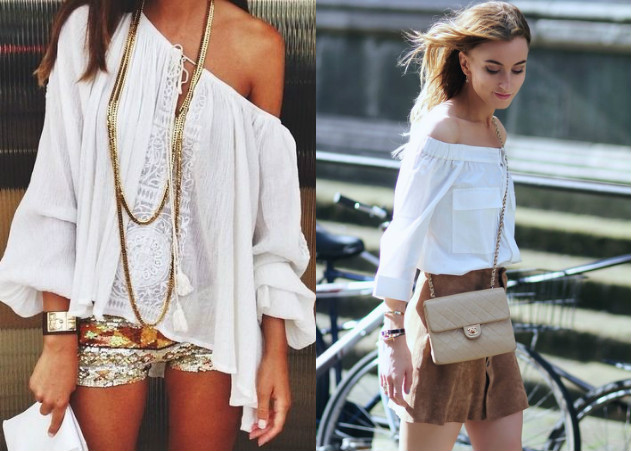 小編已經說過很多次今夏一定不可少的就是露肩單品吧~比起露胸露腿,微露香肩反而更加性感,白色的露肩上衣不管下身要搭什麼都很簡單,可以是休閒的牛仔褲,而像下圖這樣的金色亮片短褲則很有party感。