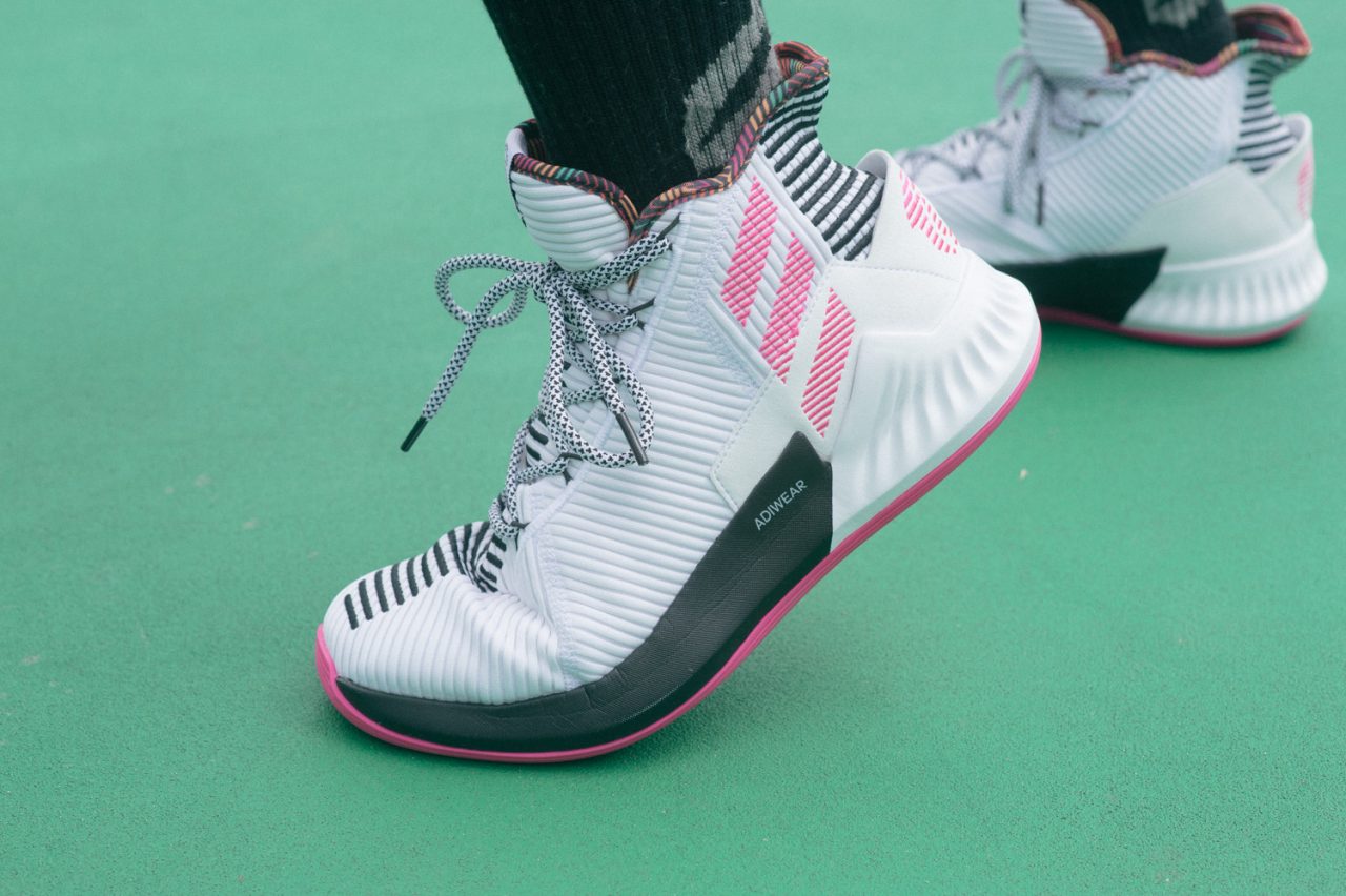 某個假日吃完飯後習慣逛逛鞋店的行程,在架上看到 D Rose 9 灰色版本的細節這才驚覺,adidas 和 Derrick Rose 雙方合作十周年了呀 (遠目),巧的是在此時誕生的 D Rose 9 成為系列作一大轉捩點,BOUNCE 避震配方首次加入 Derrick Rose 正代戰靴擔綱要角,外型上 D Rose 9 也令人為之一亮,好看與否或許很主觀但它真的很有特色,輪廓大膽的後跟結構、用無數線條勾勒出的速度感,都在第一眼就點燃我的好奇,記得幾個月前在手機上滑到諜照時還想說「會是籃球鞋…嗎?」轉眼我已經穿著 D Rose 9 度過好幾個周末早上的籃球時光,這朵玫瑰越綻越得我心。