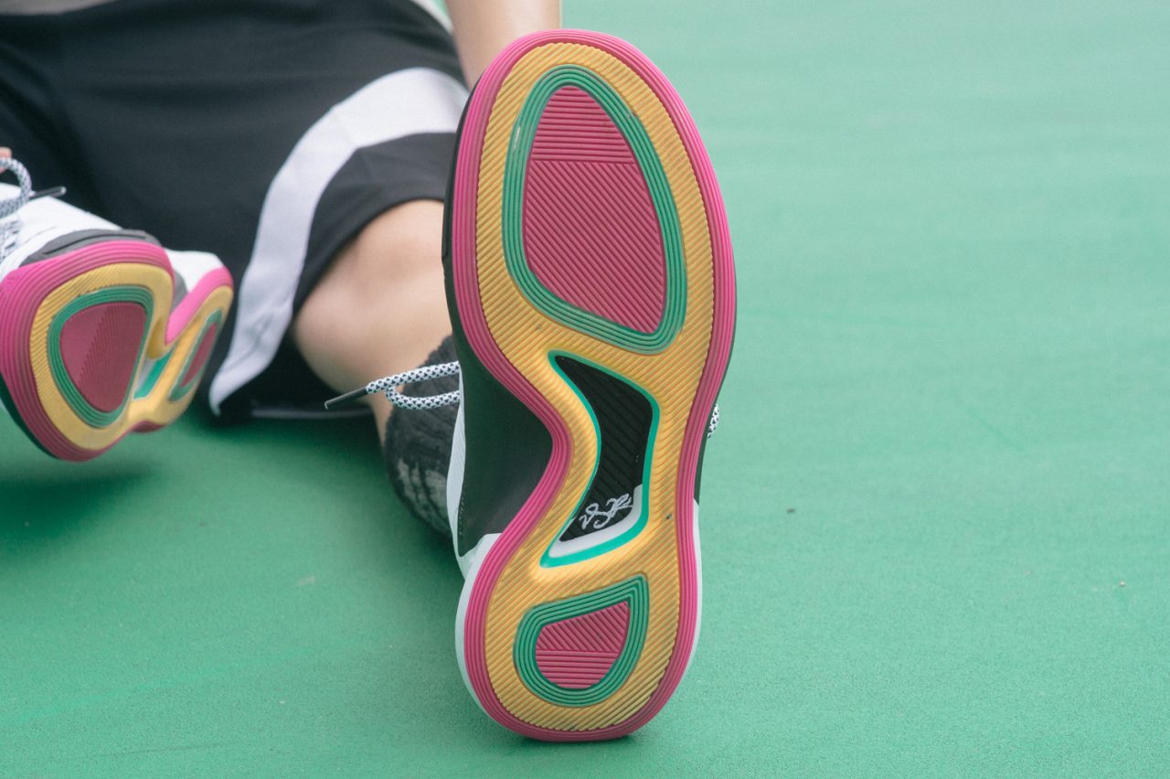 這幾年下來 BOUNCE 科技被廣泛的應用我對它已經有不錯熟悉度,穿著 D Rose 9 首戰第一個周末腳底板傳來的是比較韌、硬的感覺,隨著穿著時間拉長把 BOUNCE 馴開中底下沉潰縮的緩衝感會開始顯現,有效減輕負擔。用量調配上該厚的部分真沒在手軟,需要貼地的區域也適度解放反應性,從外觀就可以看出 BOUNCE 由後跟到前掌厚度的變化,有別於前幾代 BOOST 時期強勁 Q 彈的印象,D Rose 9 突出的點在於穩定力量傳導,寬於鞋身的後跟落地時擔綱第一道防線快速吸震,站穩後重心隨即移轉到前掌接續啟動向前推進,穩紮穩打。實戰之外提醒大家,編輯入手的 Summer Pack 版本中底黑色塗料會有掉漆情況,會在意的朋友們自行斟酌一下,至於其它版本如何大家如有入手不妨可與我們分享。