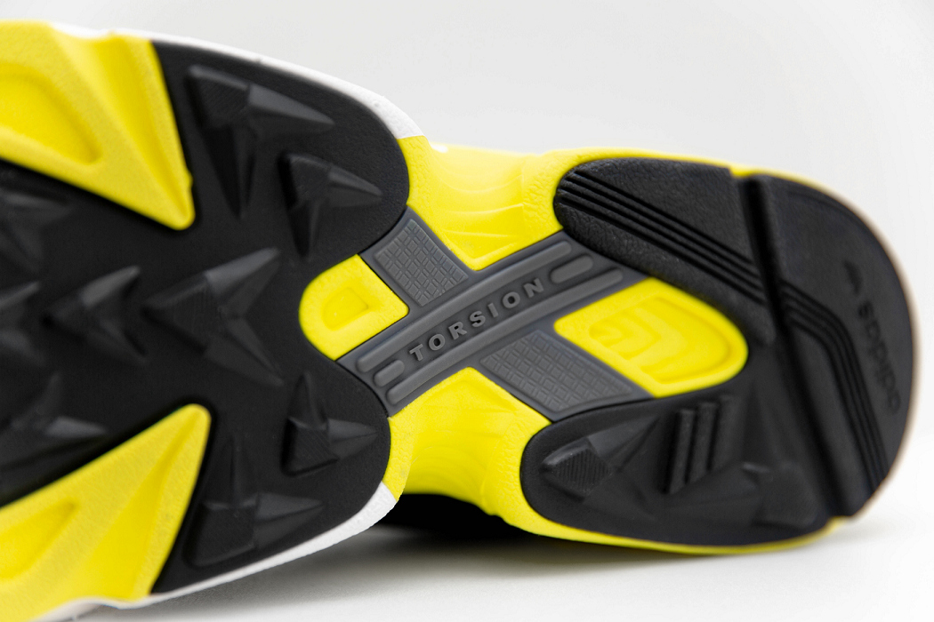adidas 與英國知名店鋪 size? 合作,以音樂曲風 Acid House 酸浩室為靈感,電子音樂歷史中相當重要的一種風格,說到這裡老師音樂請下(Acid Hous 代表曲),而黃色微笑 Trimmy 是其代表性標誌,所以在這次的 size? x adidas Originals 便發現到許多黃色笑臉。而這次聯名挑選的 Yung-1、Falcon 鞋型做聯名,兩款都是從 1997 年的 adidas Falcon Dorf 演變而來,配色上 Yung-1 鮮黃亮眼;Falcon 較為簡約,如果用音樂來比擬就像過場前的醞釀和之後飆速節奏。