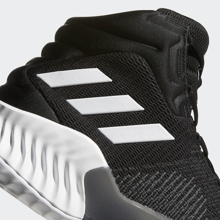 PRO BOUNCE 籃球鞋以全腳掌 BOUNCE 中底打造出色的緩震效果,提供球員支撐與保護,而快速反應的貼地腳感,讓球員在變換動作間恣意順暢。鞋面採用工藝式透氣網布與 FORGEFIBER 科技,針對鞋款側邊高張力區特別配置 TPU 塗層紗線,強化鞋面穩定性,在腳踝兩側更以立體式的鞋領設計,賦予雙足支撐力,打造舒適穿著感。大底的多向式紋路展現出色抓地力,讓球員切入急停更自在,提升進攻爆發力來展現不凡身手。