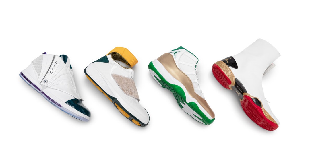 該組套裝內的球員版分別來自 Ray Allen 整個 NBA 職業生涯效力的 4 支球隊:密爾瓦基公鹿、西雅圖超音速、波士頓塞爾提克以及邁阿密熱火,每一雙都是見證他傳奇籃球歷程的夥伴。日前 Jordan Brand 鞋類產品副總裁 Gentry Humphrey 親自將禮物送到了 Ray Allen 家中,裏頭看似為 4 雙鞋但其實是由 5 款不同 Air Jordan 正代組成,趁著機會編輯也簡單跟大家一起來回顧 Ray Allen 與這 5 款鞋的時刻。