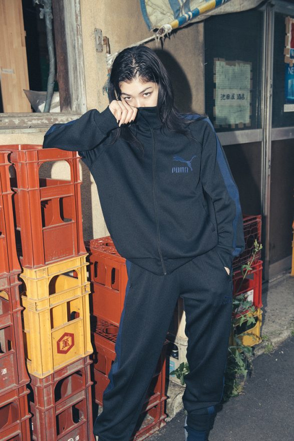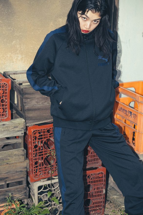 小木基史同時也為 SUEDE 50 推出聯名復古運動套裝,黑色 T7 運動外套搭配 T7 運動長褲,以 7 公分深藍色經典邊條點綴出復古氛圍,邊條特別以 ‘Sashiko’(日本傳統針線工藝)編織而成,同時呼應鞋款鞋面的特殊針織巧思;另外,也同步推出 POGGY 字樣聯名 Logo Tee,提供簡單百搭的時尚單品,作為秋冬多層次穿搭的街頭指標。