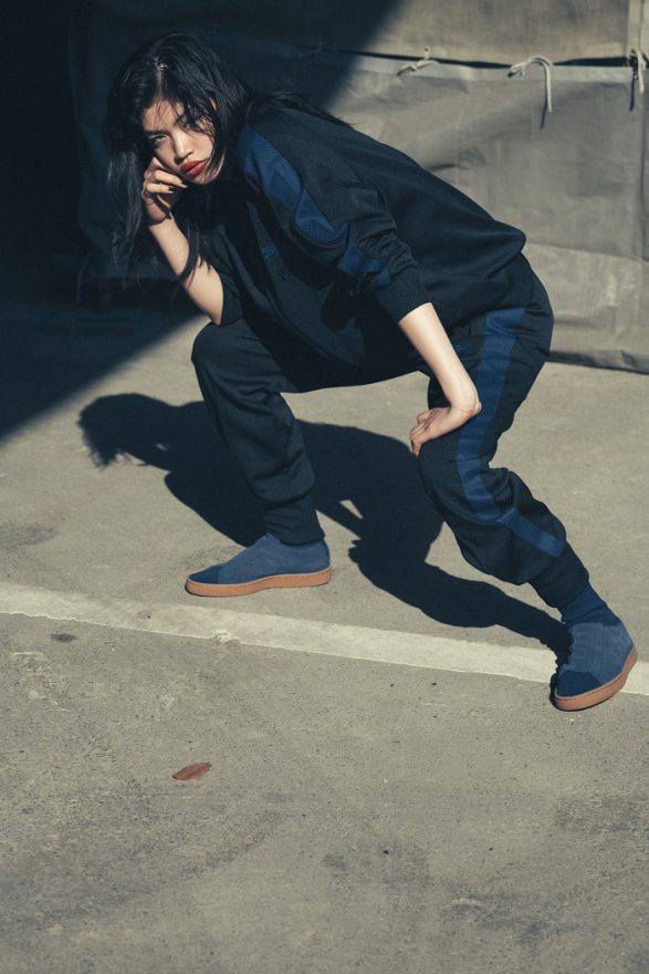 小木基史(Poggy)曾任日本時尚精品品牌 UNITED ARROWS&SONS 創意總監,他的獨特不羈的設計風格備受全球矚目與潮流圈喜愛,擅於運用其在時尚設計領域的專業並加入個人獨特強烈的態度去詮釋每一次的作品。此次聯名鞋款 SUEDE 50 x POGGY 保留 PUMA SUEDE 經典嘻哈元素本質,並將日本傳統 Tabi 足袋的概念注入設計中,東西合璧異文化交融打造全新意象;鞋履以靛藍色全針織技術及橡膠鞋底製成,腳掌前端選用鬆緊帶彈性材質設計完整包覆;鞋側跳脫標準繫帶系統,以 SUEDE 經典麂皮襪套加強穩定支撐,延伸襪套式高筒鞋身,並於鞋後跟加入日本傳統 Kohaze 金屬搭扣元素,新舊交替、東西串流的復刻神級 SUEDE 50 聯名鞋款就此誕生。