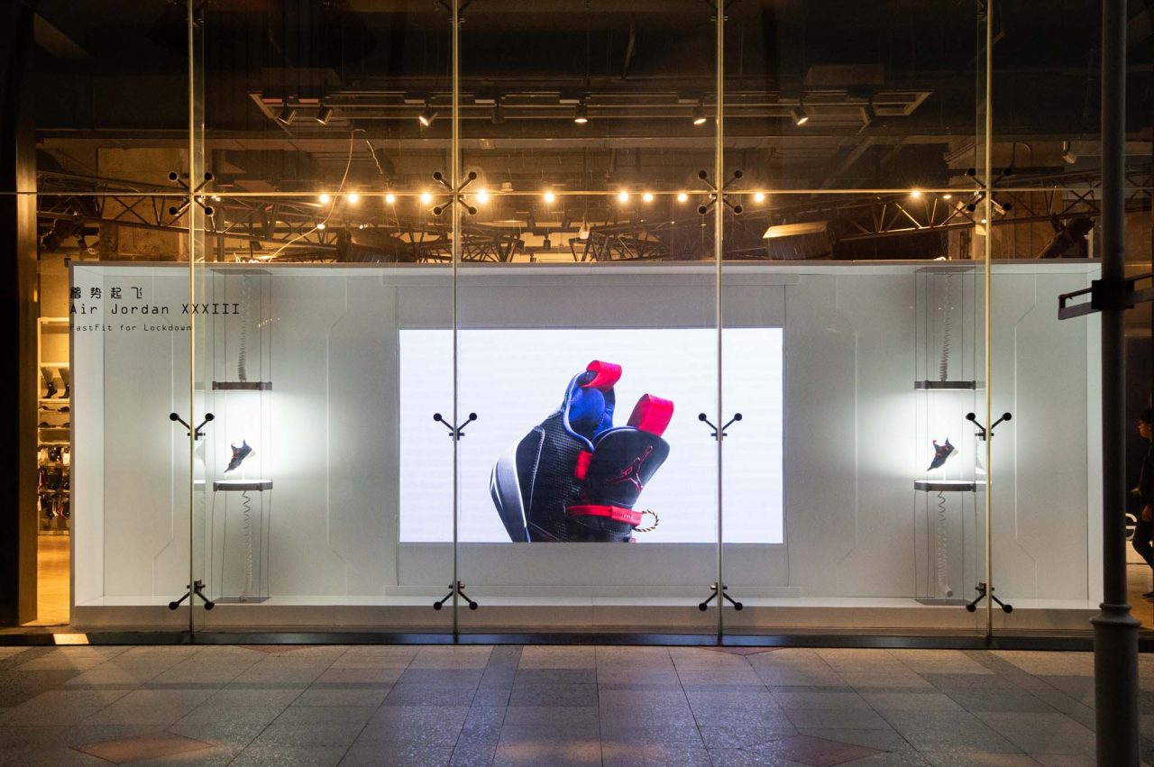 大中華區成為全球率先發售 Air Jordan XXXIII 的地區,首波便是區域限定版的 ‘Tech Pack’ 配色與大家見面,媒體體驗活動當天 Jordan Brand 在世貿天階上方寬約 30 公尺、長達 250 公尺的巨型顯示幕播送著形象影片。整個活動場館以及一旁旗艦店點 Jordan 9 Guanghua 也都被 Air Jordan XXXIII 給接管,氣勢之盛大也引起一旁路人的好奇詢問是不是有球星來訪。