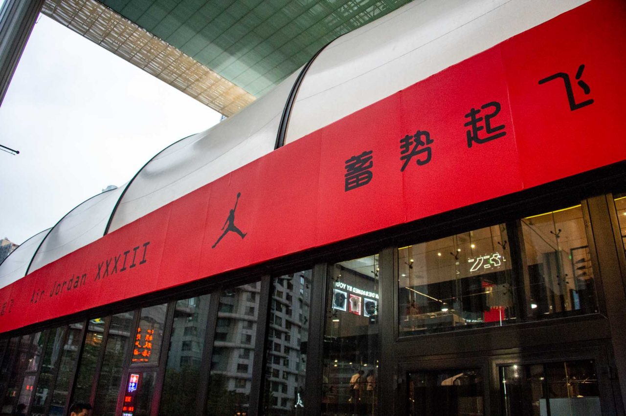 體驗活動開始前大夥先是去了一旁的 Jordan 9 Guanghua 旗艦店,包含我在內許多同行媒體都是第一次親眼見到 Air Jordan XXXIII 本尊,這一次未如前兩代那樣整體設計上很直接地向 1、2 代致意,不過從線條中能感受到有 3 代神韻融會其中,像這個大家習慣以「老屁股」相稱的 NIKE AIR 細節就是之一。