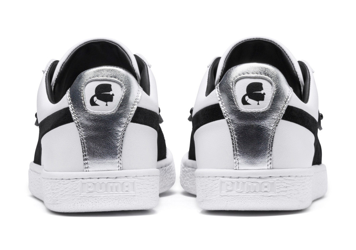 PUMA Suede Karl Lagerfeld 版本共有黑、白兩款配色,鞋款將 Karl Lagerfeld 招牌的西裝配墨鏡帶入設計中,因此無論黑白配色,鞋後跟都可見 Karl Lagerfeld 戴墨鏡的頭像。有趣的是,黑、白兩款分別代表著「西裝」、「墨鏡」,因此在鞋款上可見西裝外套、甚至可以見到整副墨鏡的設計元素。據悉鞋款將於 10 月 19 日於國外發售,臺灣方面暫無消息。