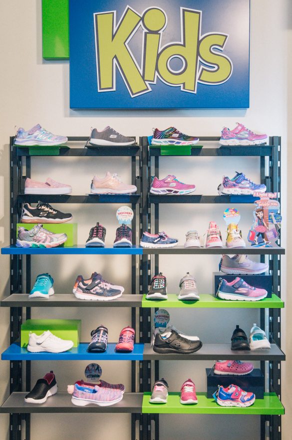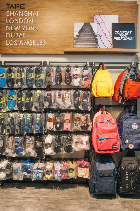 SKECHERS 全新 N 版店裝概念店以後現代主義為主軸,巧妙使用水泥、木質與金屬等異材質元素,呈現有別於過去運動感為主的店內風格,緊鄰街道的大門展示櫥窗內分別陳列著目前當季主打的專業運動、休閒款式,直接幫各位劃好重點。而且店內涵蓋男、女生以及小朋友們的鞋類和服飾產品,假日出門走走一家人來到這都能逛逛,不同年齡層的需求也能一次滿足。