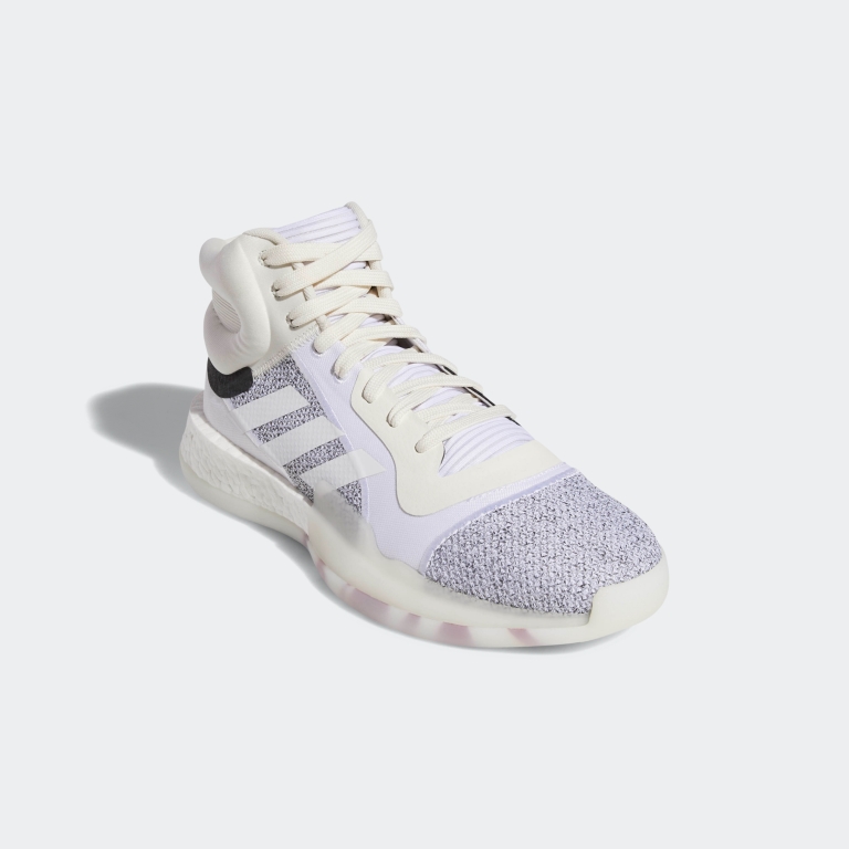 adidas Marquee BOOST 鞋款,以歷年設計經驗為基礎,融合 adidas 頂尖的技術再進化,打造適合現代籃球運動的最舒適鞋款。Marquee BOOST 別出心裁地設計出一體成形的厚層鞋領,透過選材及壓紋技術運用,提供別於過往的舒適支撐。同時採用全腳掌 BOOST 中底,帶來緩震回饋優點,前腳掌的外側加上 TPU 穩定片來防側翻。鞋款除了配置抓地力耐磨人字紋大底,更搭配網布鞋面,讓透氣度更升。外型上以簡約的配色搭配俐落的設計,鞋身印有 Brooklyn Farm 創意基地的經緯度座標,標誌著源於街頭籃球聖地的布魯克林血統。Marquee BOOST 同時推出低筒與高筒版本,滿足不同需求的籃球愛好者。